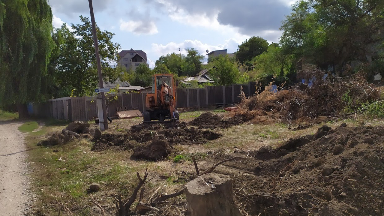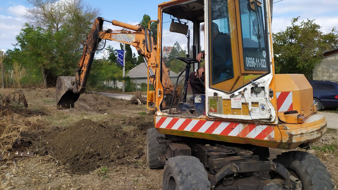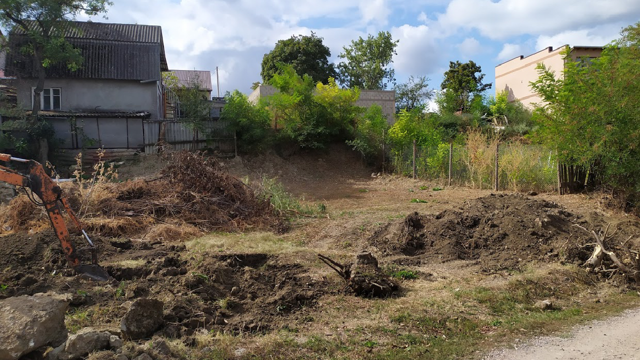 Phase I construction requires the completion of the work that began in October of 2018 when several small structures and tress were taken down and removed. In September 2019, work began to remove tree stumps; to knock down and remove a small partially collapsed house; and to level and grade the land. Completed 09/25/19. Phase II involves building a retaining wall to support the hill at the back of the building; drilling and installing the ground loops for the geothermal heating and cooling system; digging the small basement area as a utility room; and laying the building foundation and setting the structural steel columns to support the first and second floors.