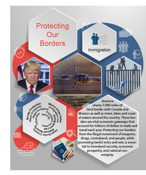 Border security is critically important to the national security of the United States. Aliens who illegally enter the United States without inspection or admission present a significant threat to national security and public safety. Such aliens have not been identified or inspected by Federal immigration officers to determine their admissibility to the United States. The recent surge of illegal immigration at the southern border with Mexico has placed a significant strain on Federal resources and overwhelmed agencies charged with border security and immigration enforcement, as well as the local communities into which many of the aliens are placed. Transnational criminal organizations operate sophisticated drug- and human-trafficking networks and smuggling operations on both sides of the southern border, contributing to a significant increase in violent crime and United States deaths from dangerous drugs. Among those who illegally enter are those who seek to harm Americans through acts of terror or criminal conduct. As President of the United States, Donald Trump highest duty is the defense of the country and its citizens. Trump believes a nation without borders is not a nation at all. Continued illegal immigration presents a clear and present danger to the interests of the United States.
