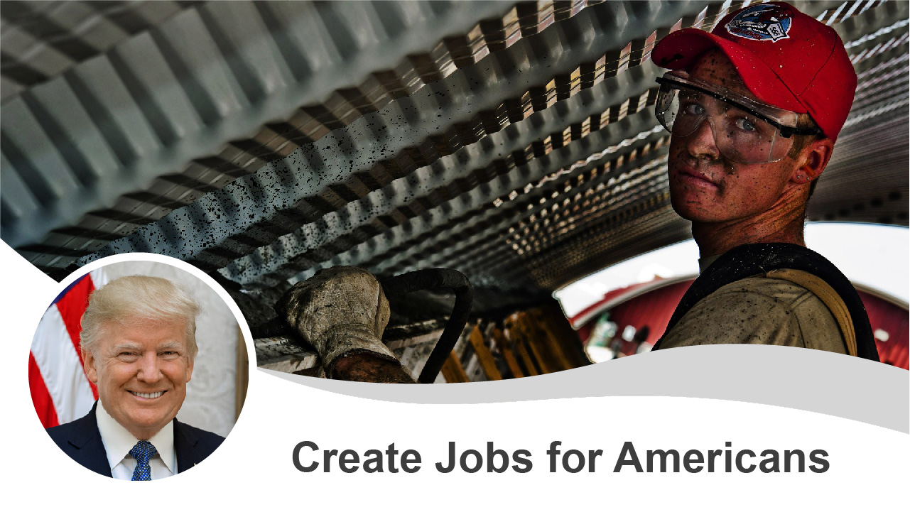 Donald Trump promised to be the greatest job-producing president in U.S. history. In his first two years, he's created 4.7 million jobs. He pledged to create 25 million jobs in the next 10 years. If he did it in eight years, that would beat the current record-holder, President Bill Clinton. He created 18.6 million jobs during his two terms. President Roosevelt increased jobs by 21.5 percent, the largest percentage increase of all presidents. To beat that record, Trump would have to create 32.7 million jobs. To create those jobs, Trump promised to boost economic growth to 4 percent per year. He pledged to create good, well-paying jobs, not just low-wage service positions. Donald Trump also promises to bring thousands of job back to the United States that had been shipped overseas by American companies. Trump promises to stop American companies from shifting positions overseas through the use of tariffs. His plan includes an "America-First" trade policy, tax cuts, and rebuilding infrastructure. Instead of driving jobs and wealth away, America will become the world’s great magnet for innovation and job creation.